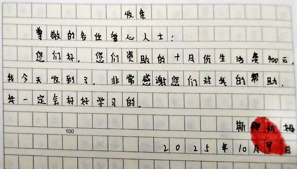 从2022年9月起,因尊敬的胡老师改助其他孩子,斯那初母的助学立即有另外几位好心人接过来了。他们的资助款收支明细如下: