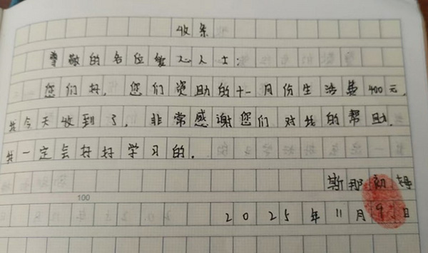 大理大学一位充满爱心的胡英老师表示,为了帮助孩子克服困难愿意每个月给斯那初母600元生活费,让孩子安心学习,愉快成长。因此,本项目改作由大理胡老师资助,不再接受其他好心人的资助了。