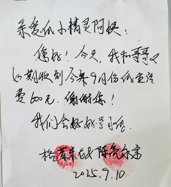 我们与志愿者商议,寻求好心人来帮帮这对兄妹俩。计划每个月资助他们俩共600元生活费,让他们兄妹能够继续安心学习。善款汇到本站指定账户,我们按时转给当地志愿者罗绒曲珍,由她负责交给孩子,并监督使用。好心人“成都小精灵”得知这件事,立即答应自己承担兄妹俩的生活费资助,随即汇来了兄妹俩的第一笔资助款。