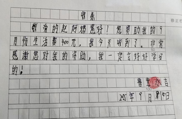 2024年4月收条(资助标准调整到400元/月