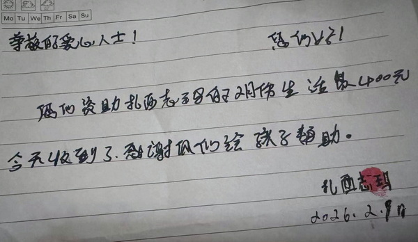 本次善款募集合计2720元,加上前期余额,超过半年需要量2400元,募集活动结束。