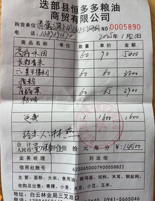粮油签收单
